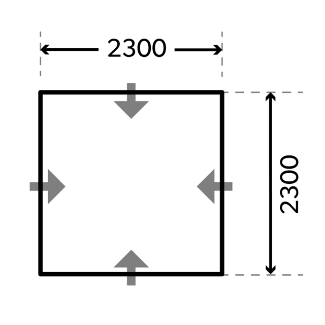 • Dimensions: Depth: 2300 mm; Height: 2300 mm; Width: 2300 mm