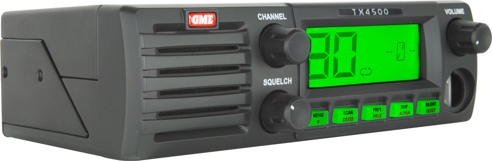 Featuring a rugged die-cast metal chassis and robust professional-grade microphone with magnetic mounting bracket, the TX4500S is the radio of choice for agricultural machinery, plant equipment and heavy vehicle operators.