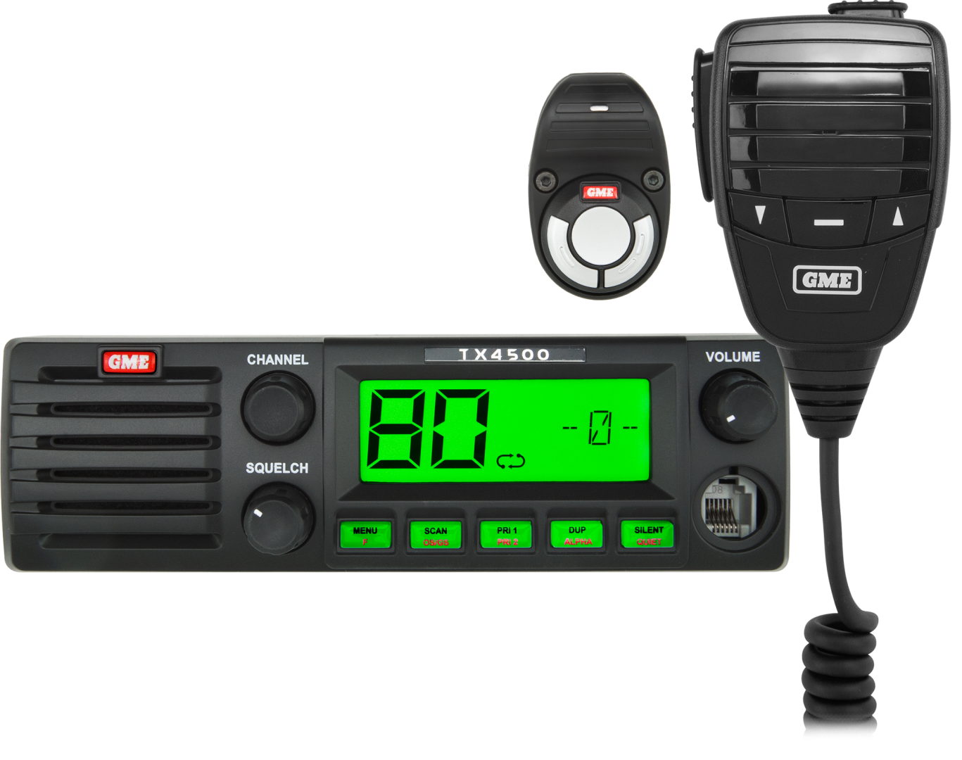 The TX4500WS offers all the market-leading features benefits of the venerable TX4500S UHF CB Radio, with the added convenience of a steering wheel mounted wireless PTT control.