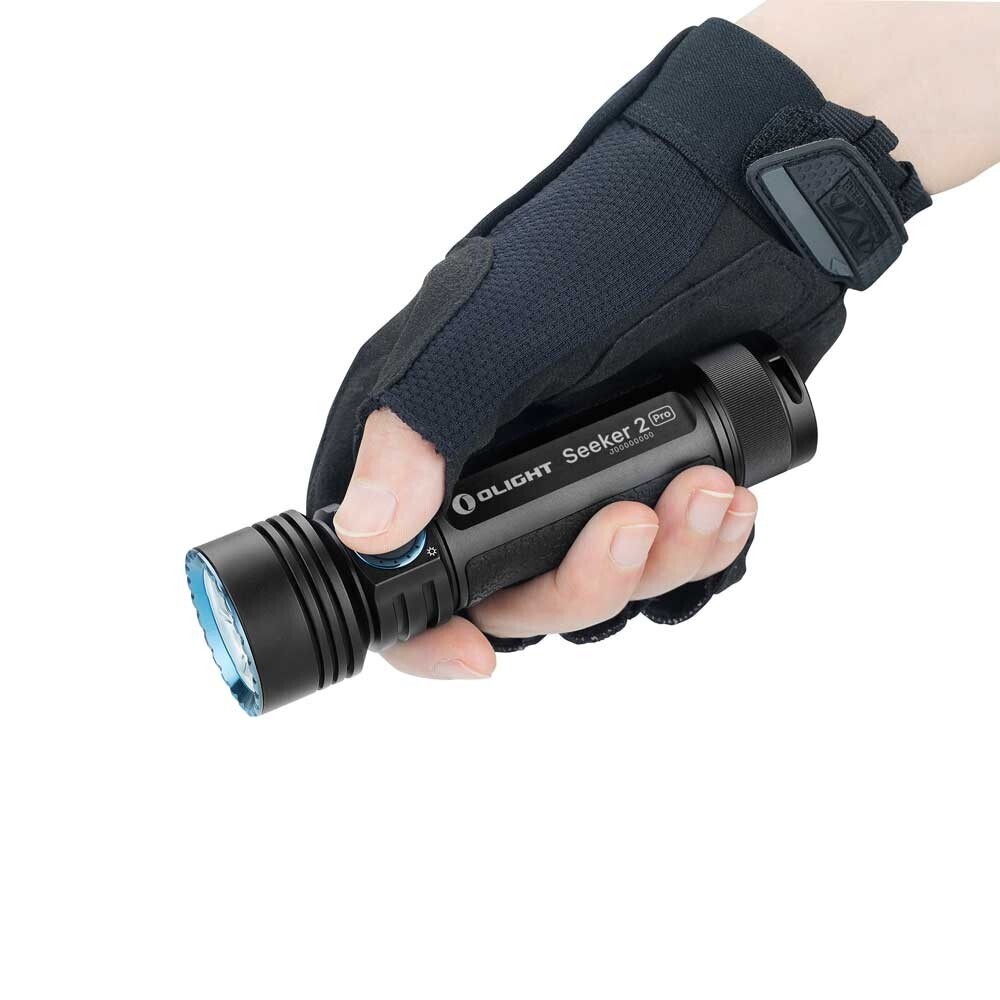 The Seeker 2 pro features a large side switch located near the head of the light for comfortable thumb operation and indicators on both sides of the switch clearly display the battery power and brightness level. With milled finger grooves and dermatoglyphic silicone, the Seeker 2 pro is ergonomically designed to be extremely comfortable and provides a non-slip grip.