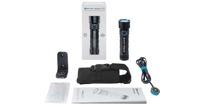 198g, 3200 Lumens: The Seeker 2 pro is a powerful, rechargeable side-switch LED torch. Powered by a single 5000mAh 21700 customized lithium rechargeable battery that helps this light deliver a maximum output of 3200 lumens. It uses high-quality LEDs paired with a TIR optic lens, providing a perfect medium and close-range illumination experience. Charging cable and L-Dock included!