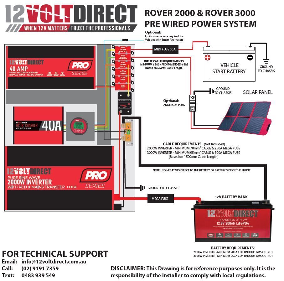 Rover 2000 Pre Wired Power System Board 2000W Inverter 40A AC & DC Charging, Battery Monitor & Power Distribution